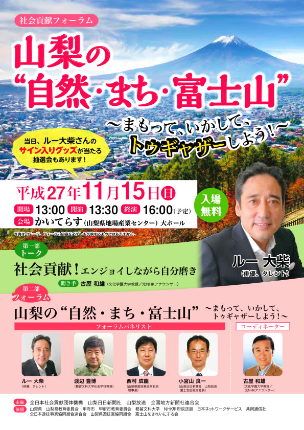 「山梨の“自然・まち・富士山” (文化学園大学教授/元NHKアナウンサー) 「社会貢献!エンジョイしながら自分磨き」 【第2部】パネルディスカッション |